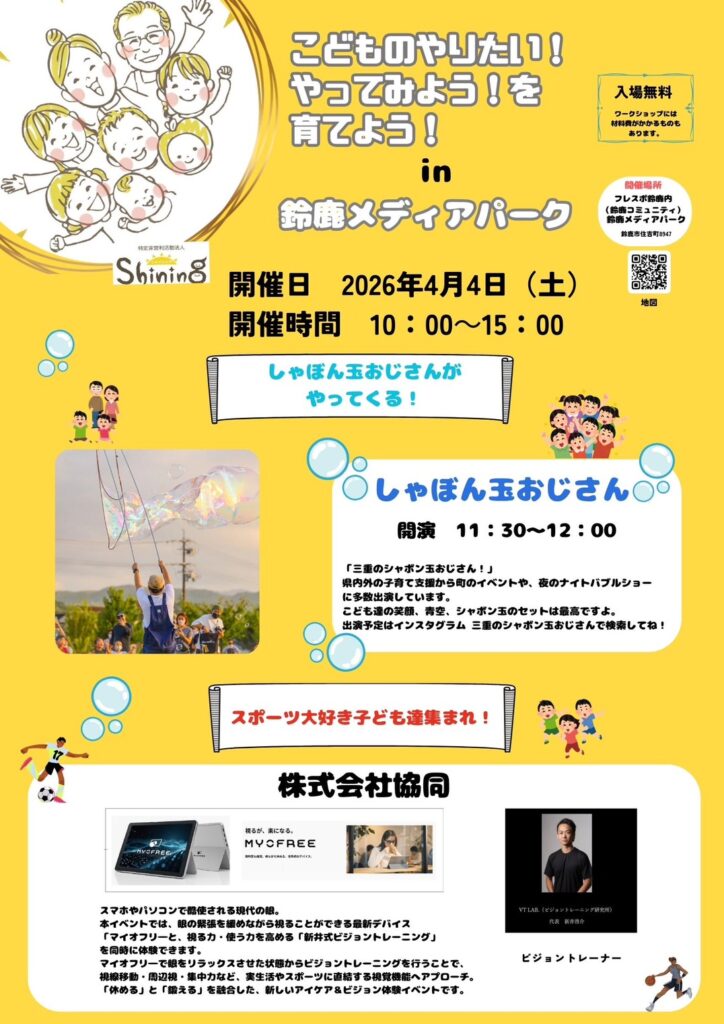 こどものやりたい!やってみよう!を育てよう!in鈴鹿メディアパーク 雨天中止